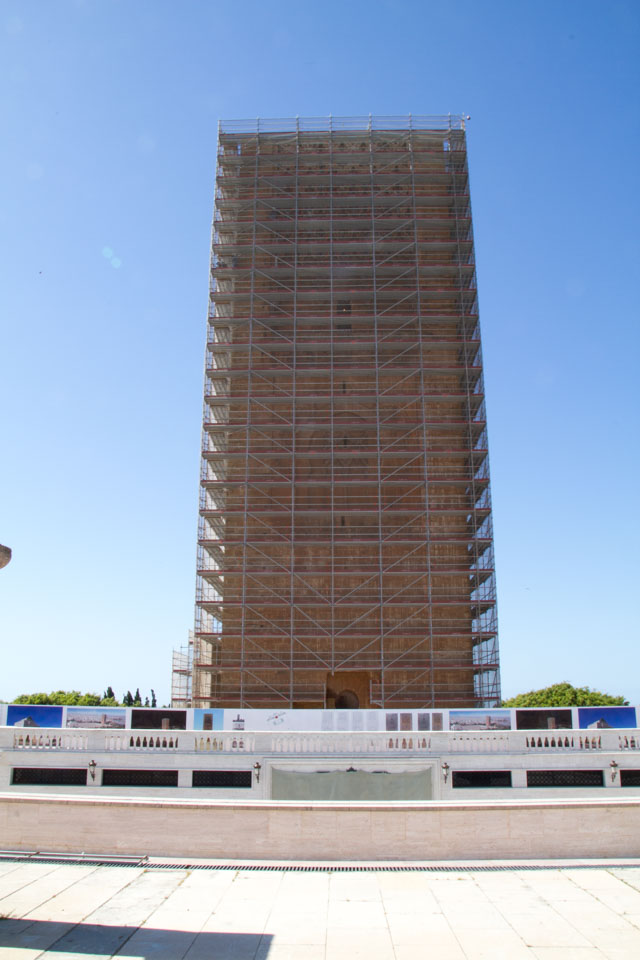 そして、同じ霊廟のある敷地にあるもう一つのシンボルが「ハッサンの塔」。しかし、ここは工事中のようで、四方を網(フェンス?)で囲まれていて、塔の外見すら見ることができませんでした。ちょっとついてなかったかも。