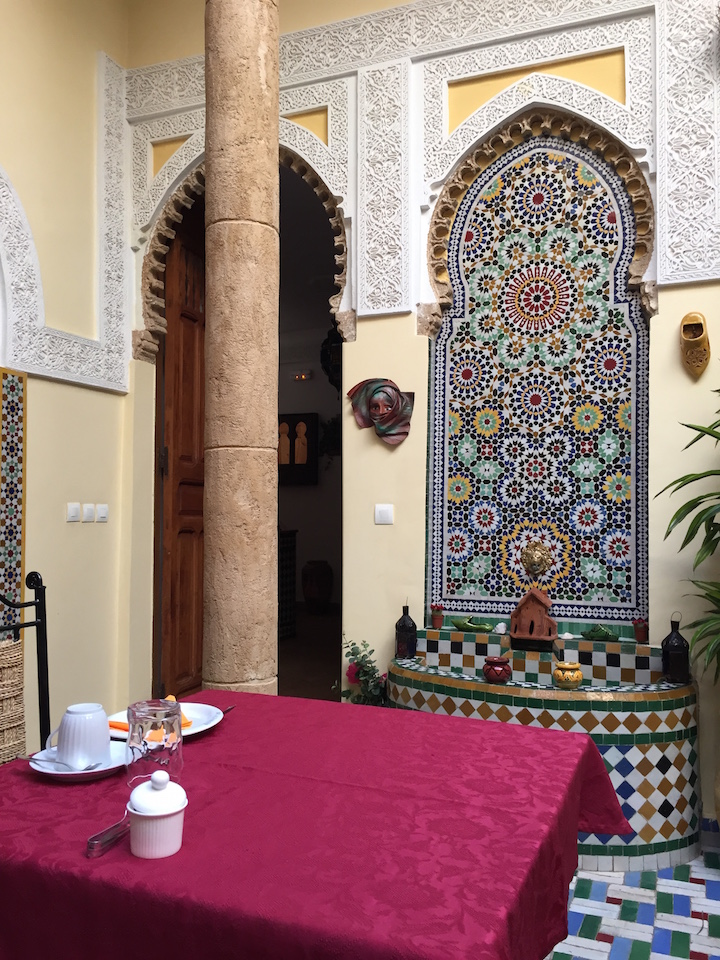 The hotel was a relatively new riad-type hotel in the Medina, a little north of the city. It was not a typical type like Marrakech or Fez, but an ordinary hotel rearranged in riad style. The room was the same as a normal hotel.