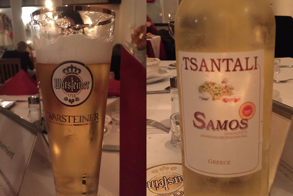 The beer was German and the wine was Greek. I accidentally said sweet, so I got some kind of dessert wine…. This was bad.