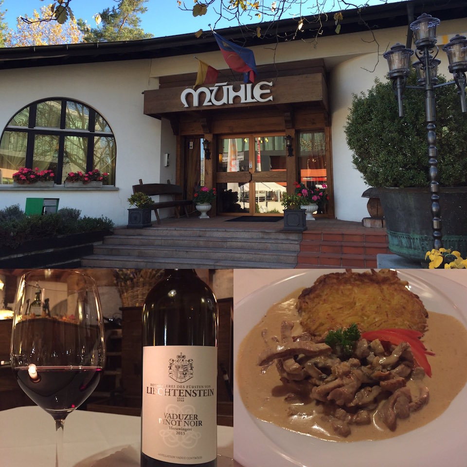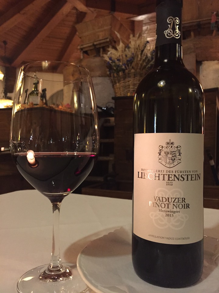 And wine. Liechtenstein is known as a country that makes good quality wine, although the amount of production is small. So we ordered a local red wine. This wine is made at the winery owned by the Marquis of Liechtenstein. Pinot Noir.