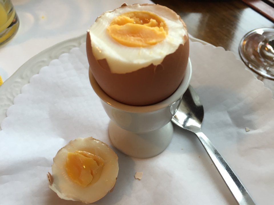 You can also request whether you want your eggs boiled, scrambled, or fried. I chose boiled. Yes, it comes out in this format, so that’s how you eat it. It’s a scene right out of “Cagliostro’s Castle”.