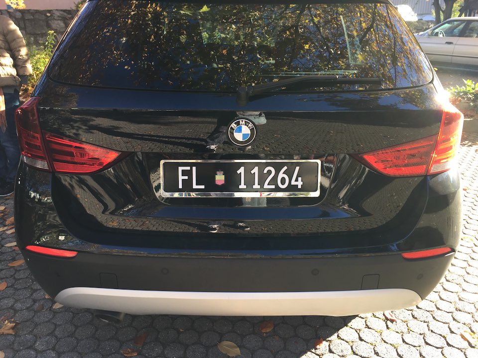 ところで、リヒテンシュタインの正式名称はドイツ語で「Fürstentum Liechtenstein」といいます。ということで、略称はこの頭文字をとって「FL」。クルマのナンバーもこのようになっております。ナンバープレートもその色合いがかっこいいですねー。