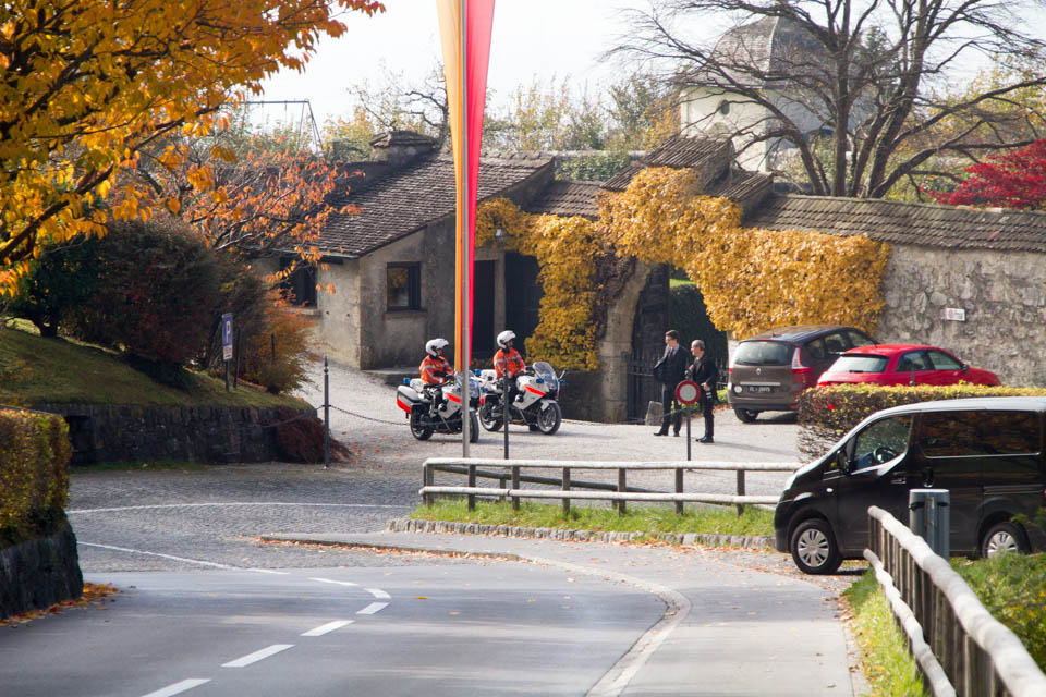Finally, we arrived at the castle. The road in front of the castle was very nicely maintained. The autumn leaves of the mountains were very beautiful.