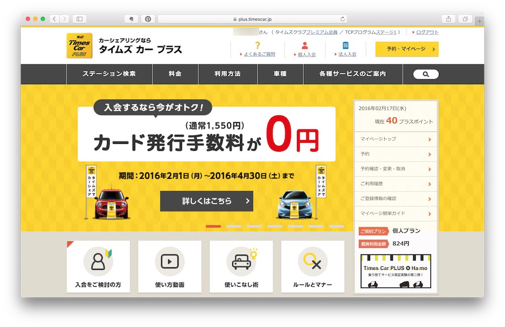 カーシェアリングのタイムズカープラス:https://plus.timescar.jp