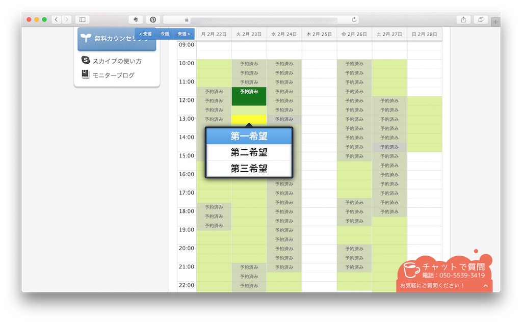 On Cafetalk, after you register your ID, you purchase points by credit card or PayPal. 1 yen = 1 point, valid for 5 months. After that, you can search your favorite lesson and make an appointment with a tutor. You can enter your first to third choice.