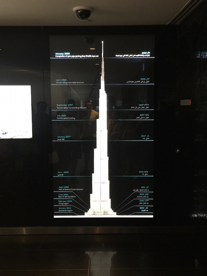In the corridor to the elevator, there was a series of exhibits explaining how this Burj Khalifa was built. The guide also explained in order.