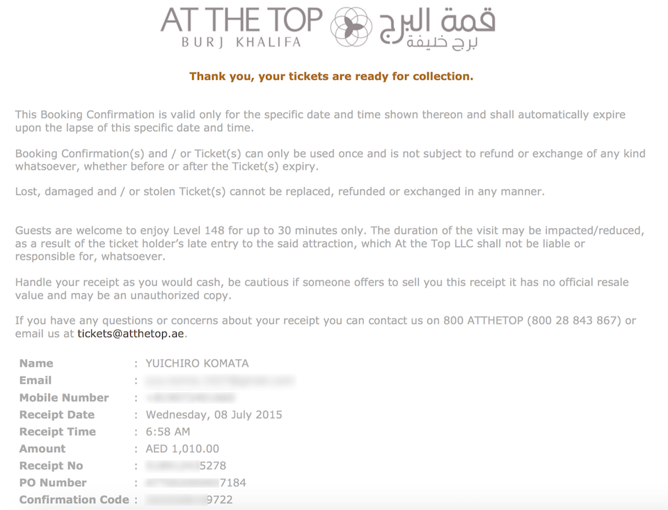 It costs a lot of money, but we chose to go to the highest observatory. I was able to complete the reservation without delay from the website. You will receive an email immediately after the reservation. You can get not only the body of the email but also a pdf with the reservation details.