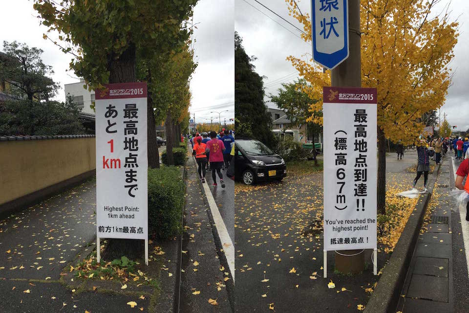 And this mountain side trunk area starts before 10km. The locals call it the “mountain trunk”. This is a very wide course, but it is uphill for about 2km. This is almost the only uphill section in the Kanazawa Marathon.
