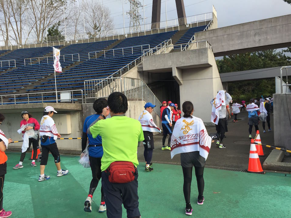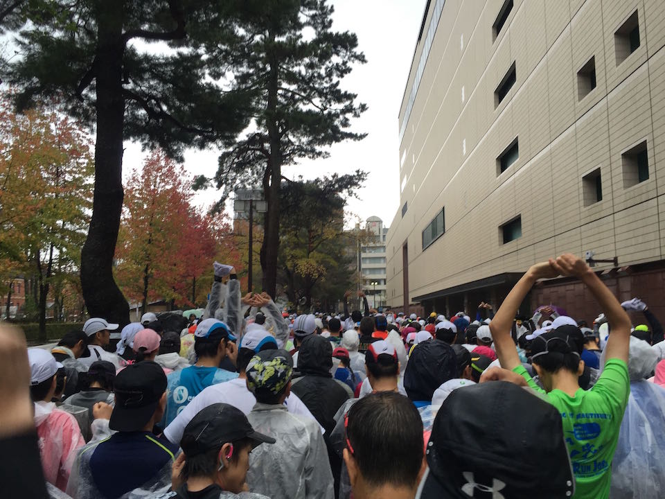 The venue was already crowded with many runners. However, compared to the Tokyo Marathon, which I have participated in in the past, the number of runners was not so large. The Tokyo Marathon has about 35,000 runners, almost three times as many as the Tokyo Marathon.