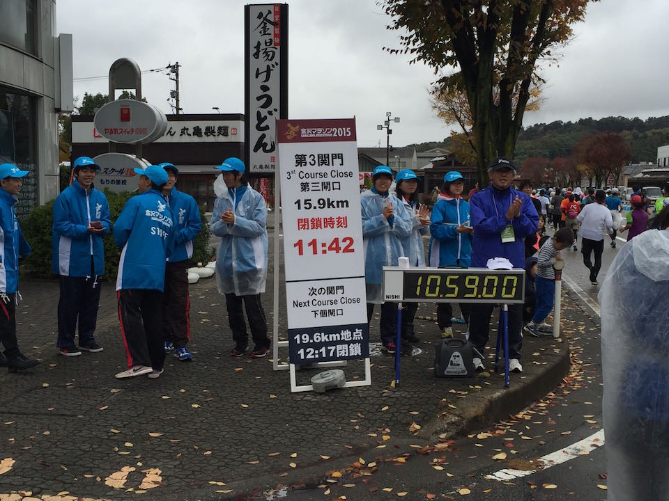 Well, I was getting hungry around here. In most marathons, there are no aid stations until after 20km. However, since Kanazawa Marathon is still relatively close to the city, there were convenience stores all over the course. I decided to take a restroom break and have a meal (at my own expense) here. A town of students = many shops? That’s right.