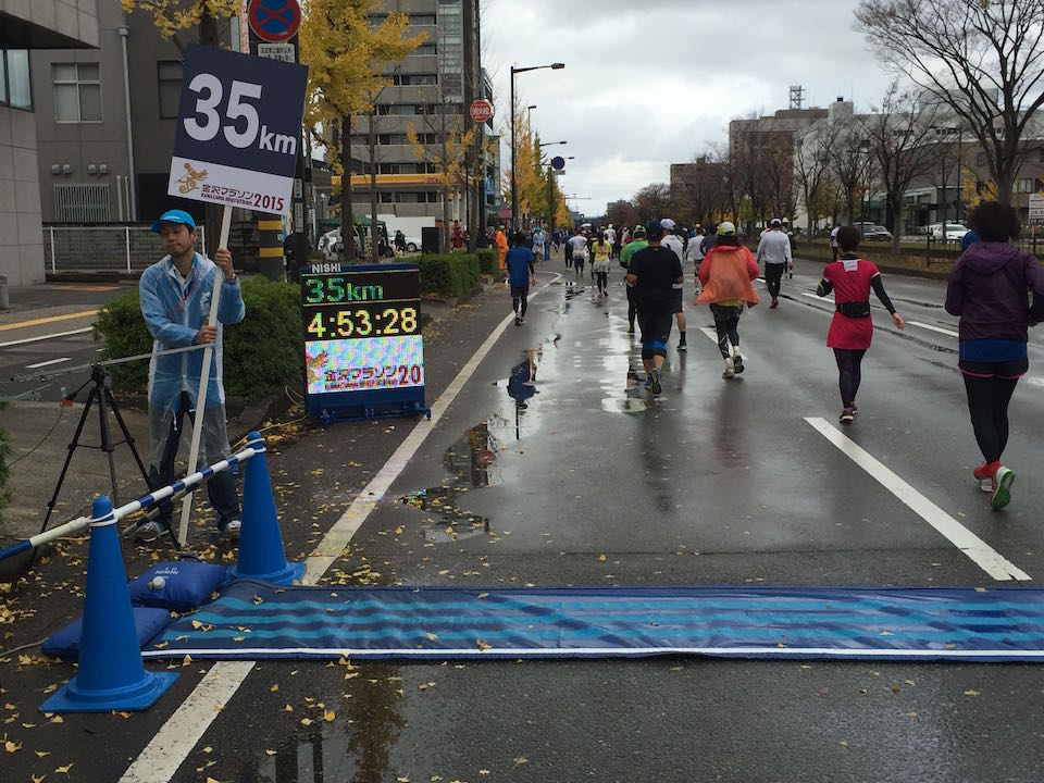 The last part of the course is from 35km in the Eki Nishi Shin Toshin area. By this time, my legs were quite damaged. I can still run slowly, but my speed is slower than I usually imagine. I think I hadn’t been practicing enough and it really showed. I felt like I had used up all my savings from the first half of the race, and it became tough to break 5 hours and 30 minutes. However, the time limit is not a problem at all. I think I can do the impression.