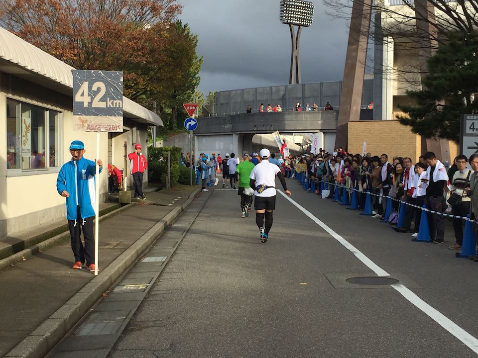 After 41km, I could see the track and field stadium where I would finish. When I see the goal, I get excited and my legs start to move. One more breath.