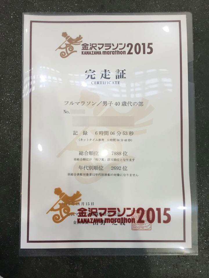 At the end of the race, I received a “Finisher’s Certificate” and this was the end of my Kanazawa Marathon.