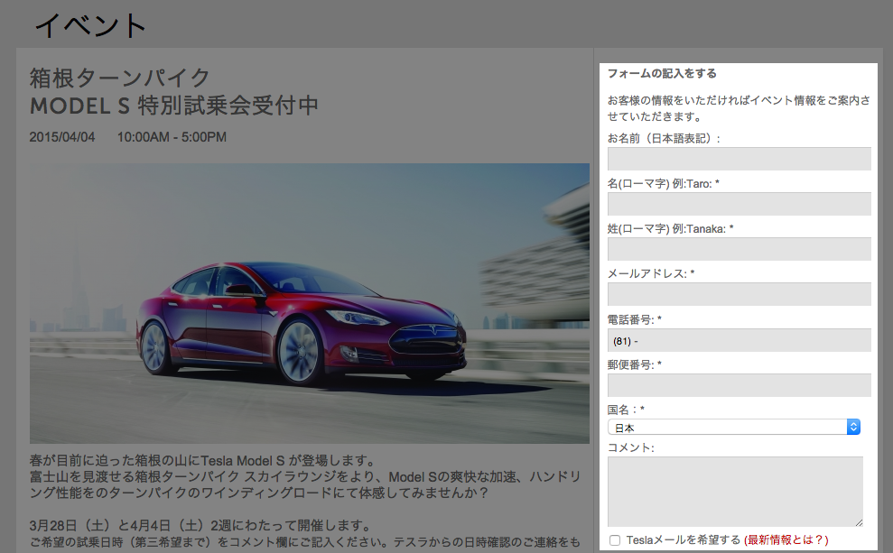 箱根ターンパイクMODEL S 特別試乗会 | http://my.teslamotors.com/jp/event/hakone