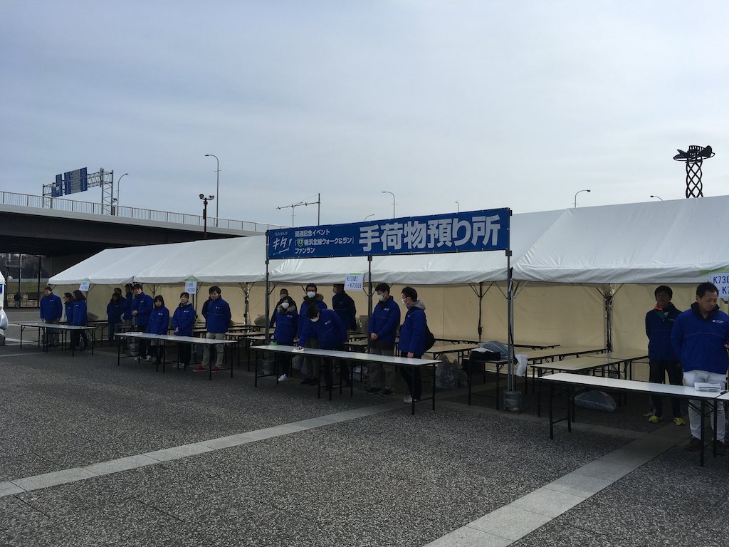 You can leave your luggage with them during the race. However, the venue, Shin-Yokohama, or more specifically Kodeke where Nissan Stadium is located, is not far from my house, so I packed a small backpack with minimal luggage and headed there dressed for a quick run.