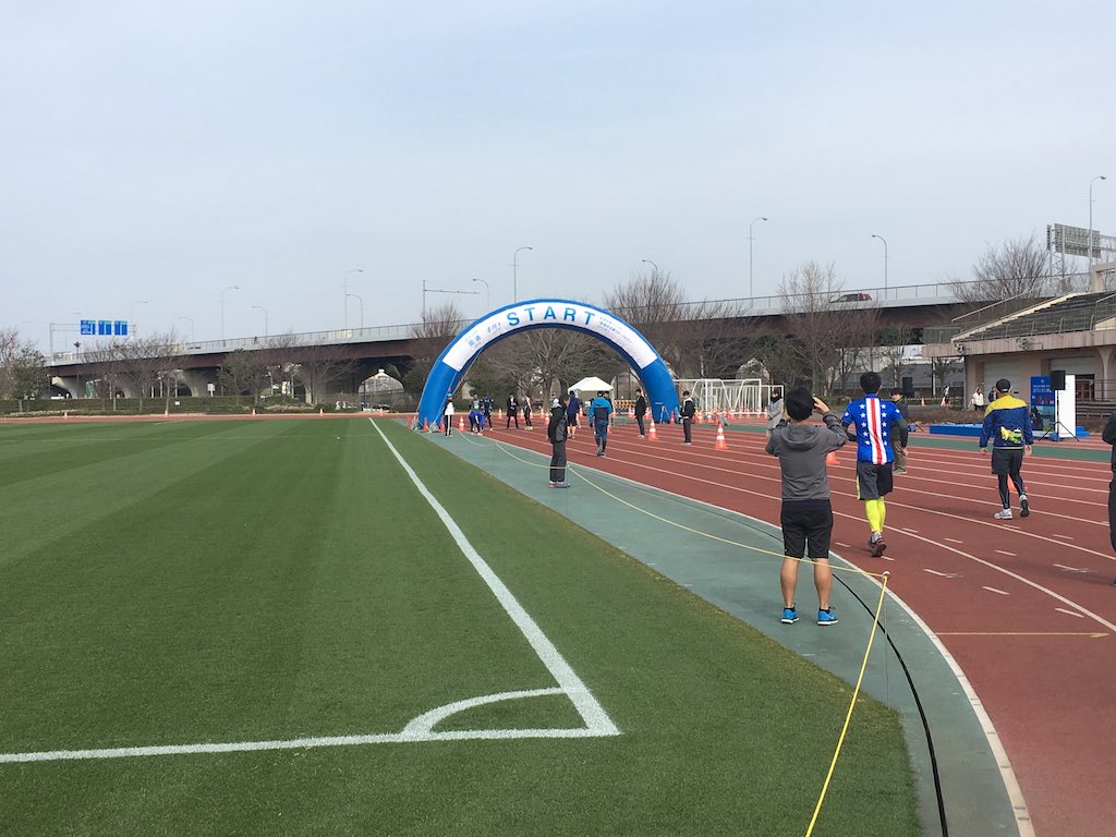 It was a little early, but we lined up at the starting track. There were not many people so it was not crowded. The grass of the soccer field was very beautiful.